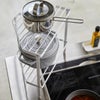 コンロのコーナーに設置して、収納スペースをプラスできるコンロラックです。