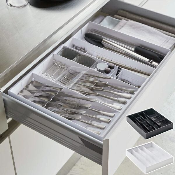 収納ケースには3種類の仕切りが付いており、自由に組み合わせて使用できます。収納するものに合わせてカスタマイズして、自分好みのカトラリー収納に。