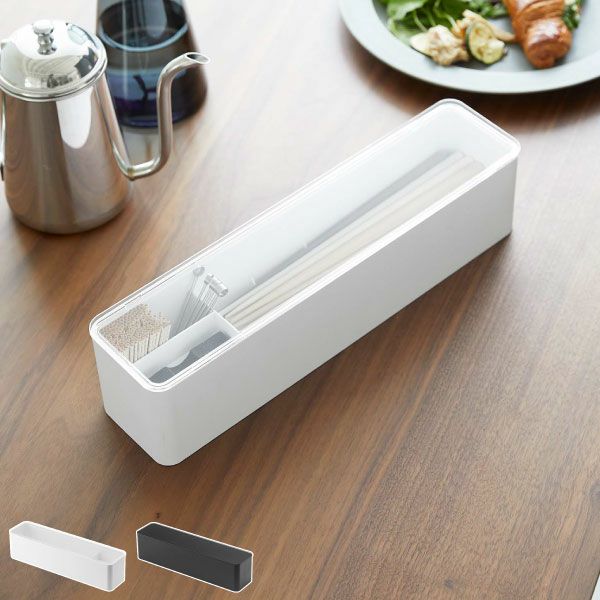 ごちゃつくカトラリーを一括収納してくれる、フタ付きカトラリーケースです。お箸やスプーン・フォークはもちろん、爪楊枝や箸置きなども一緒に収納できるから、テーブル上がすっきりします。