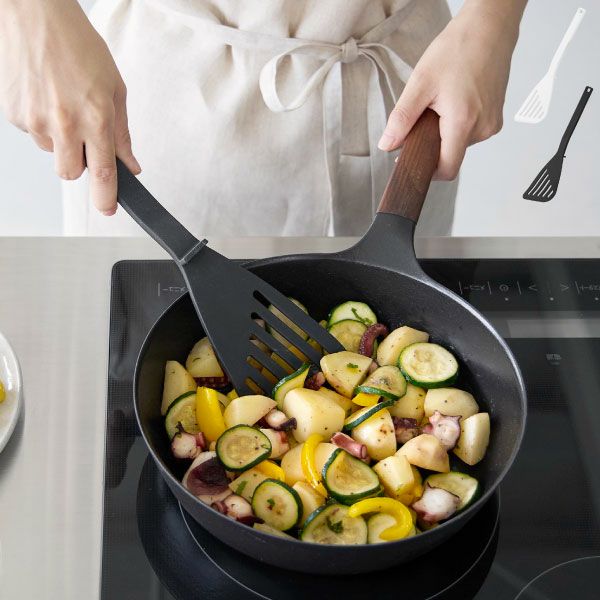 ターナーのように食材をすくったり、ひっくり返したりすることもでき、万能に使えます。