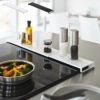 カバーの奥行き約10cmと、とってもスリム。コンロ奥の狭いスペースにも設置しやすいサイズです。棚としても活用できるので、お鍋の一時置きや調味料の収納に便利です。