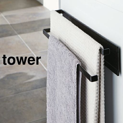 山崎実業 洗濯機横マグネットタオルハンガー 2段 タワー tower | バスグッズ・タワーシリーズ