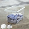 ハンドル部分は、持ちやすい可動式で、片手での持ち運びに便利です。ベランダなど物干し場所への持ち運びはもちろん、クリーニング店やコインランドリーへの持ち込みも楽々。洗濯後の水に濡れて冷たくなった洗濯物を、直接触れることなく運べるので、冬場も助かりますね。