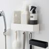 浴室内では、お掃除アイテムをひとまとめにできて便利。収納ボックスの底面にはフック用の穴があるので、水が溜まらず衛生的です。洗顔アイテムや歯磨きグッズを置くのに活用しても◎。