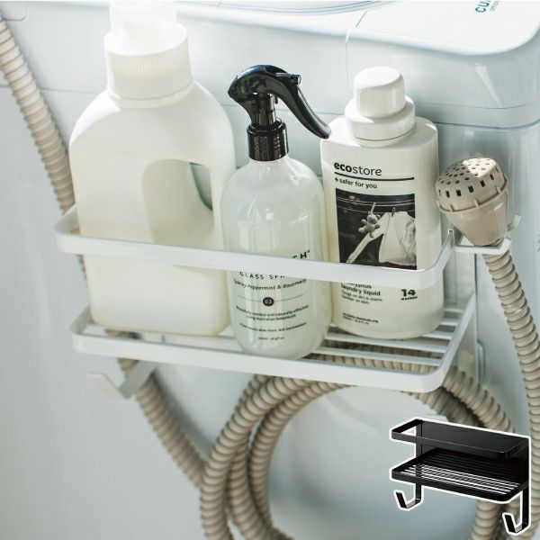 洗濯機の側面に取り付ける事で、洗濯洗剤や給水ホース、洗濯ハンガーを