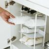 約幅20cmと場所を取らないスリムなフォルム。空間を縦に使うことで、限られたシンク下のスペースを有効的に活用できます。細身のフレームだから、ストッカーの奥にしまいこんだ物も見通すことができます。