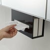 洗面台の近くにボックスティッシュを置くと気になるのが水ハネ。ティッシュを戸棚から吊り下げて収納することで、水濡れを予防でき、快適に使用できます。