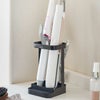 ヘアーアイロンとコテをまとめて収納できるヘアーアイロンスタンドです。差し込むだけの収納なので日常使いにピッタリ。 コンパクトなサイズなので洗面台などスペースが限られている場所にも置く事ができます。 また、底部のシリコーンには仕切りが付いており、ヘアーアイロンを差し込んだ際に滑ることが無く安全です。