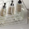 ディスペンサーボトルや洗顔用チューブなどのバスアイテムを、ひとまとめに収納。