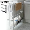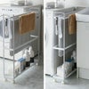 シンプルで清潔感のある、ワゴンタイプのバスタオルハンガーです。スリムなサイズ感で、約15cmの隙間にぴったりと収まります。洗濯機横のデッドスペースを有効に使うことができます。