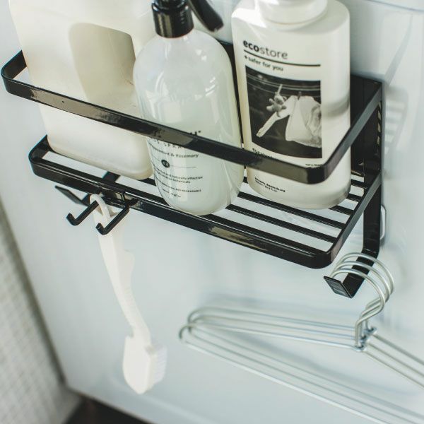 洗濯機に磁石で設置可能。給水ホースや洗濯洗剤をすっきり収納