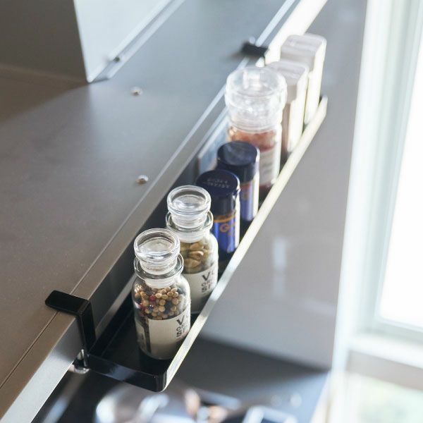 スチールパネルにぴたっと貼れるマグネット付きスパイスボトル