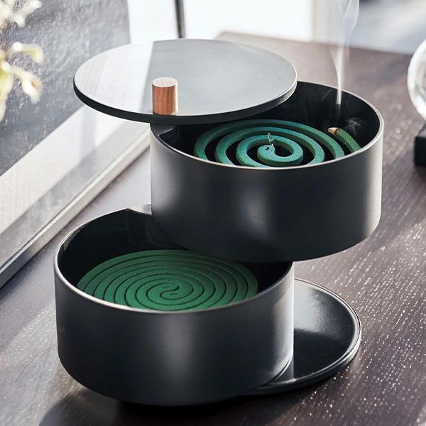 1台で蚊取り線香を使いながら予備を収納できる蚊取り線香入れ