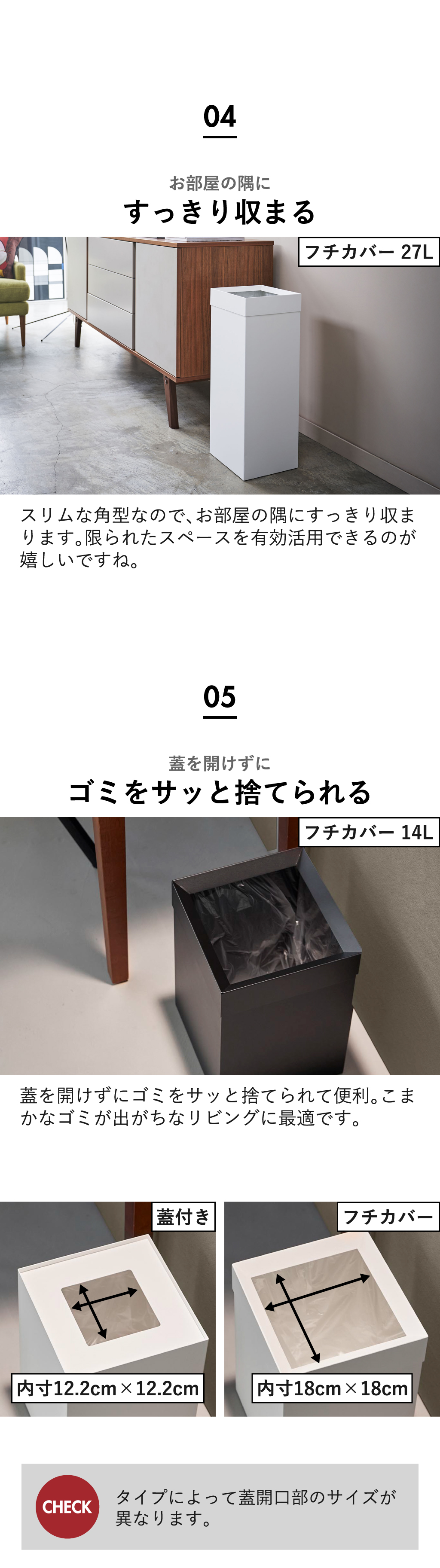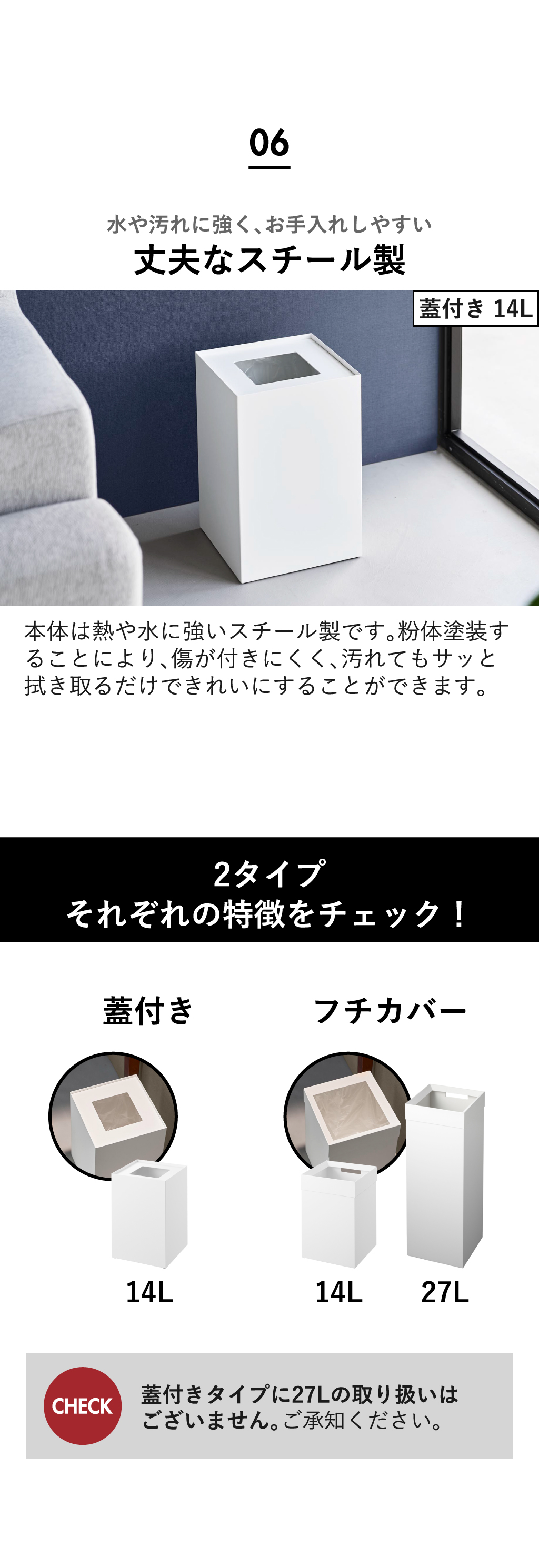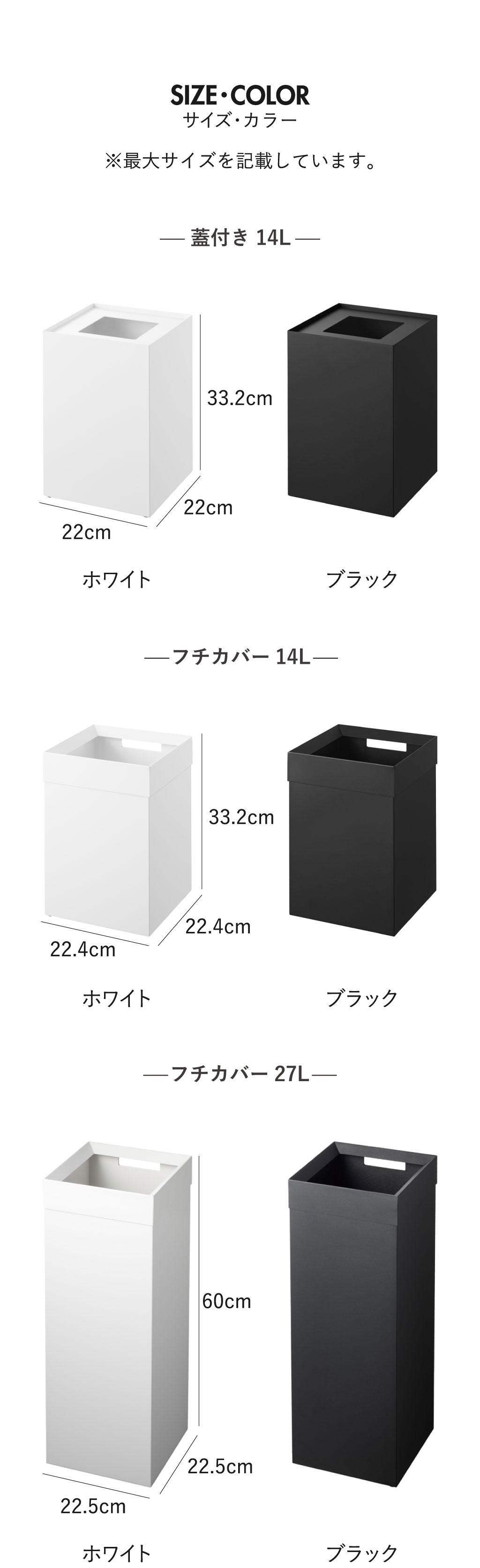 ※蓋付きタイプに27Lの取り扱いはございません。