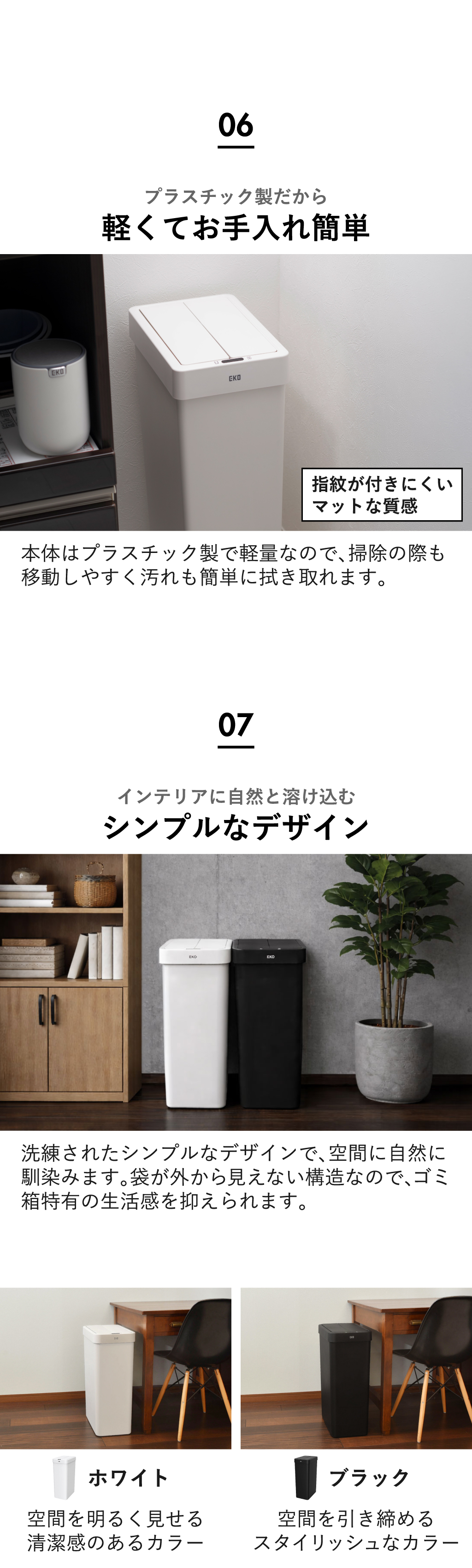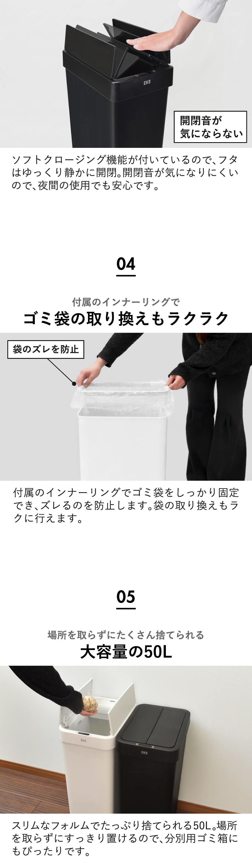 袋の取り換えもラクに行えます。スリムなフォルムでたっぷり捨てられる50L。