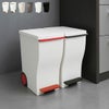 料理中など、手がふさがっているときもペダルを踏めば、簡単にふたをあけることができます。また手動でフタを開ければ、開けっ放しにすることも可能です。 さらに本体からペダルがはみ出さない設計なので、足元に当たったりと邪魔になることがありません。掃除などで動かすときも大きなキャスターが付いているので、移動も楽に行えます。