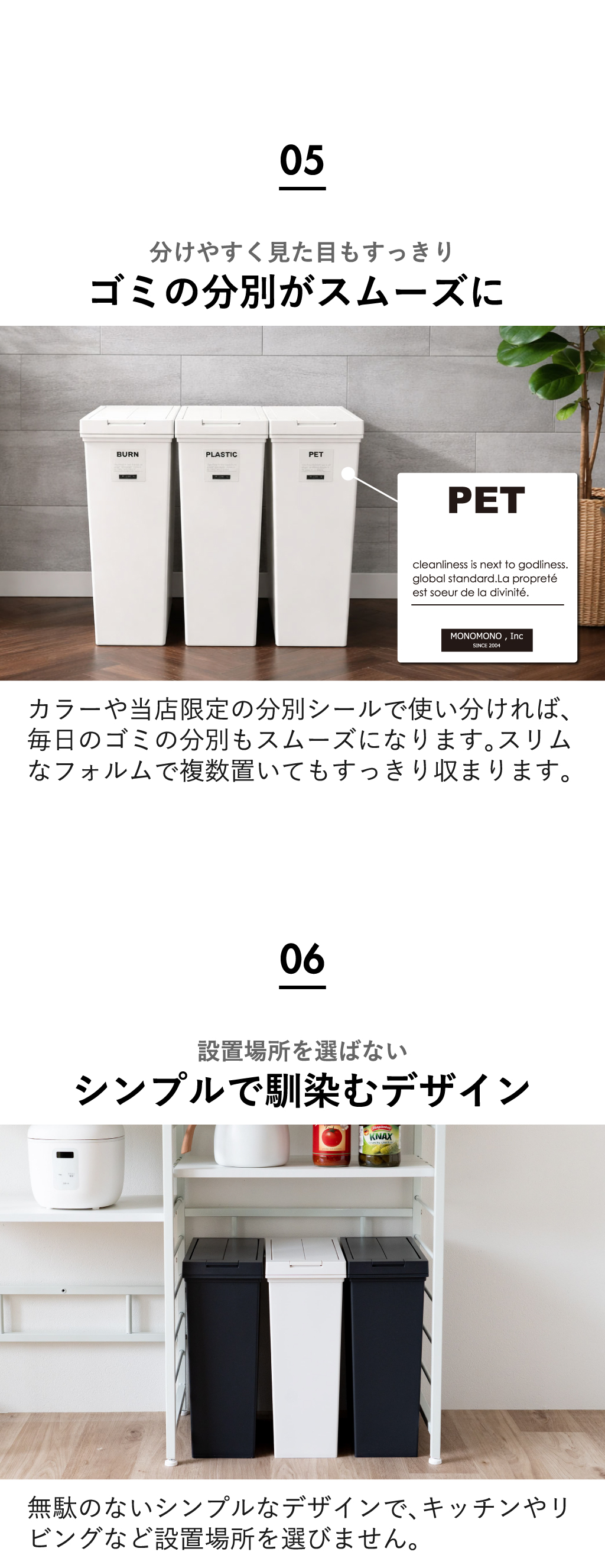 カラーや当店限定の分別シールで使い分ければ、毎日のゴミの分別もスムーズになります。