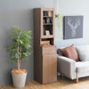 美しい木目が目を引くウッドテイストのシンプルなゴミ箱です。上部はガラス扉付きの収納棚になっています。まるで家具のようなデザインは高級感があり、一見ゴミ箱に見えません。ナチュラルな木の質感が、ぬくもりのある空間を演出します。本品は組立式です。