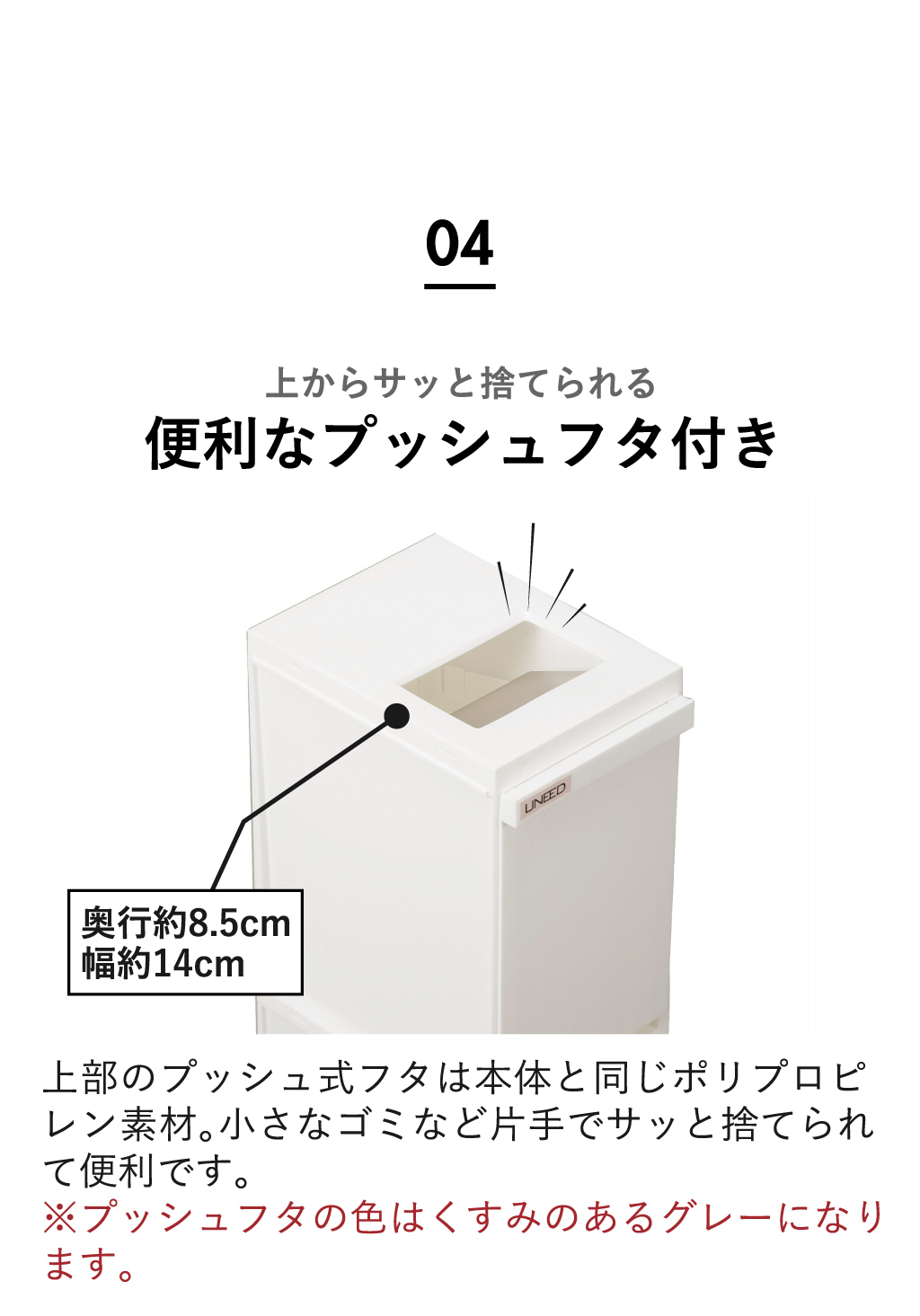 素材 本体・引き出し・プッシュフタ:ポリプロピレン