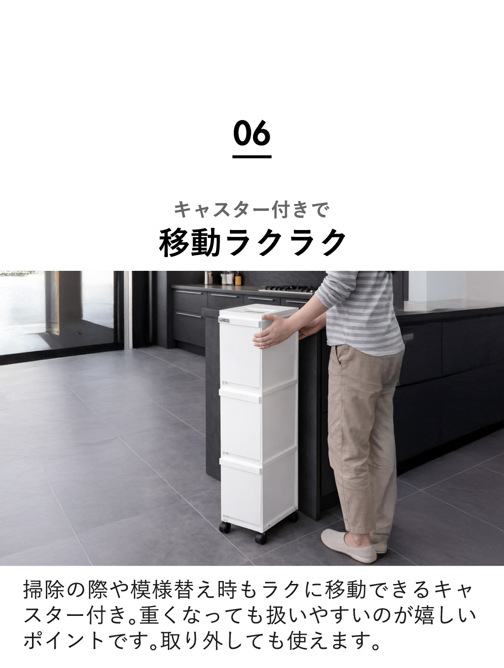 ゴミ箱の下を掃除したいときや、模様替えの際もラクに動かせます。