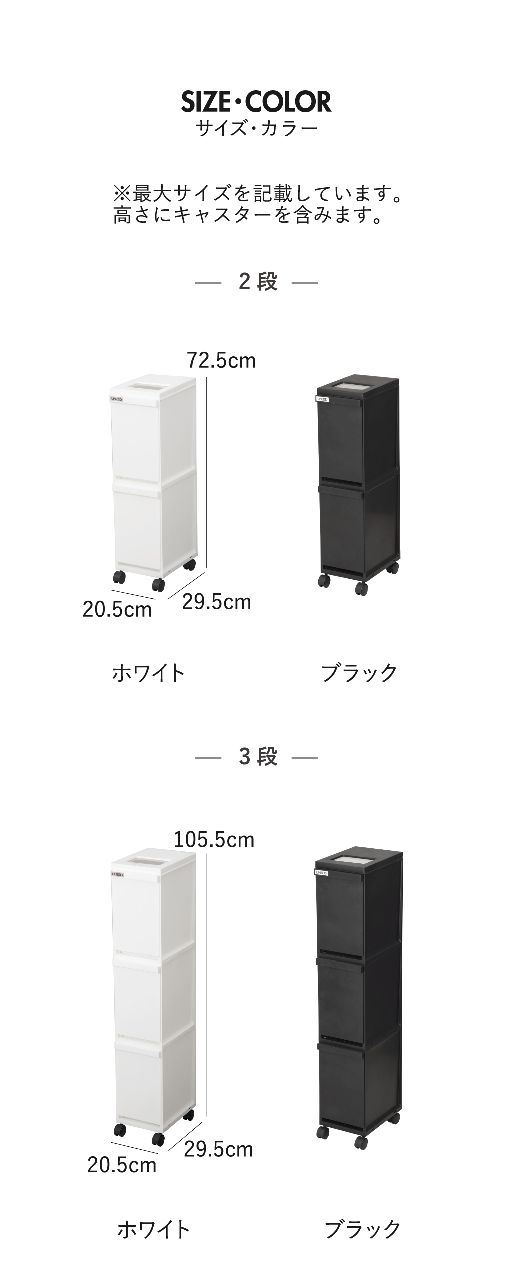 ※キャスター付きサイズ