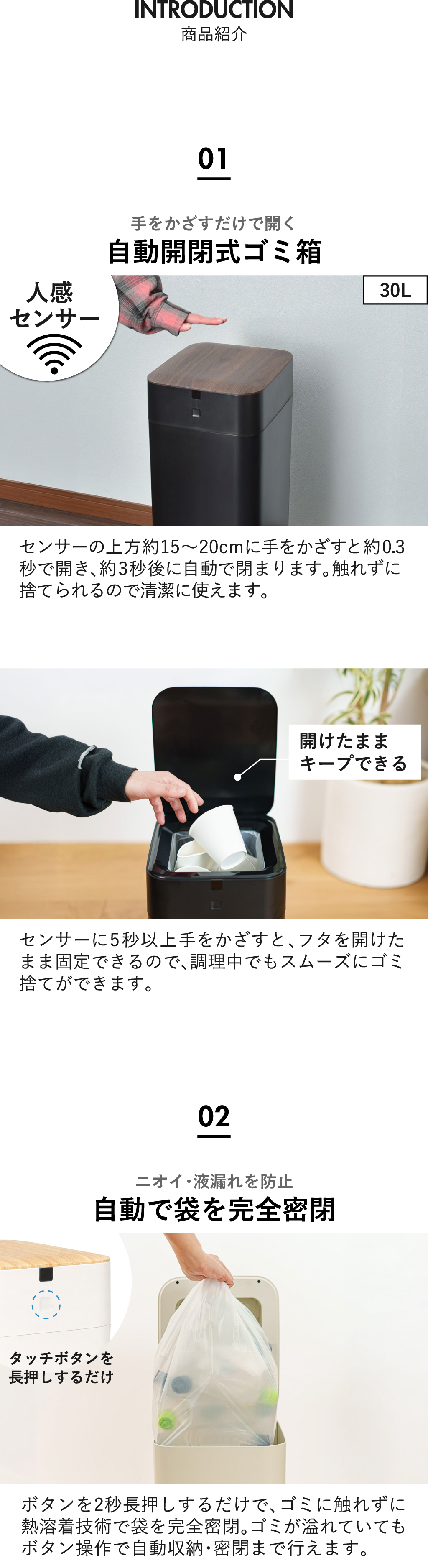 触れずに捨てられるので清潔に使えます。センサーに5秒以上手をかざすと、