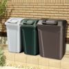 角を取った丸みのあるシンプルなデザインで、ベランダ、キッチンなど屋内外問わず活躍します。おしゃれなカラーリングで、分別用に並べて使ってもインテリアとして様になります。