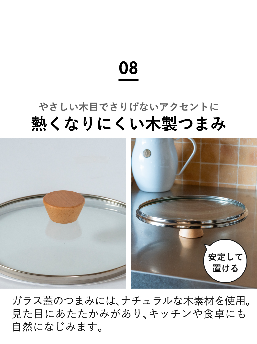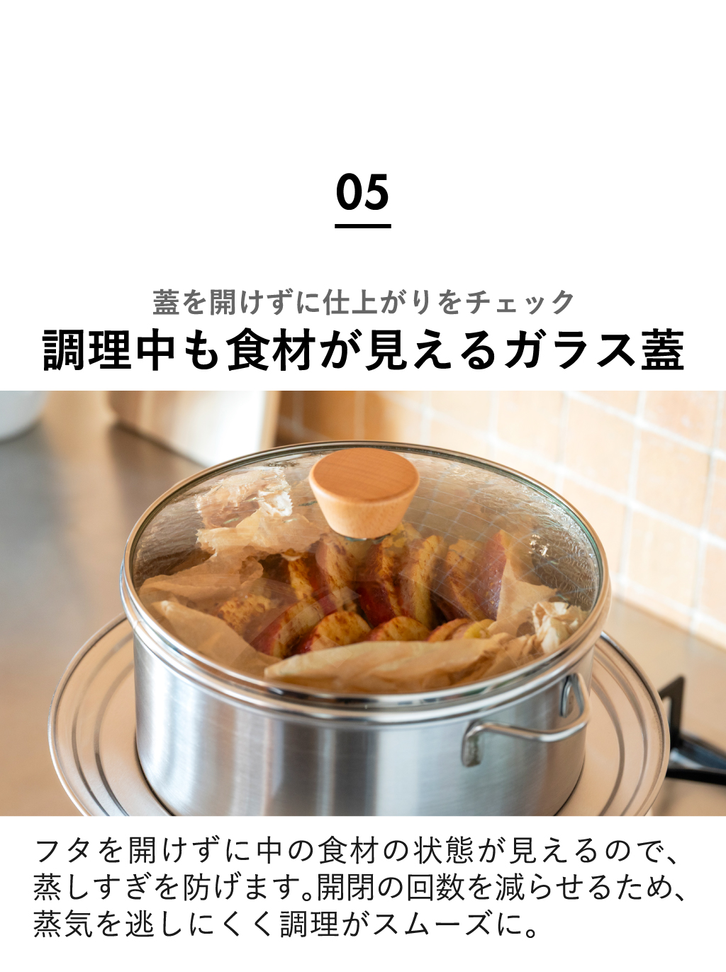 ガラス蓋は中の様子がひと目で確認でき、火加減の調整もスムーズ。