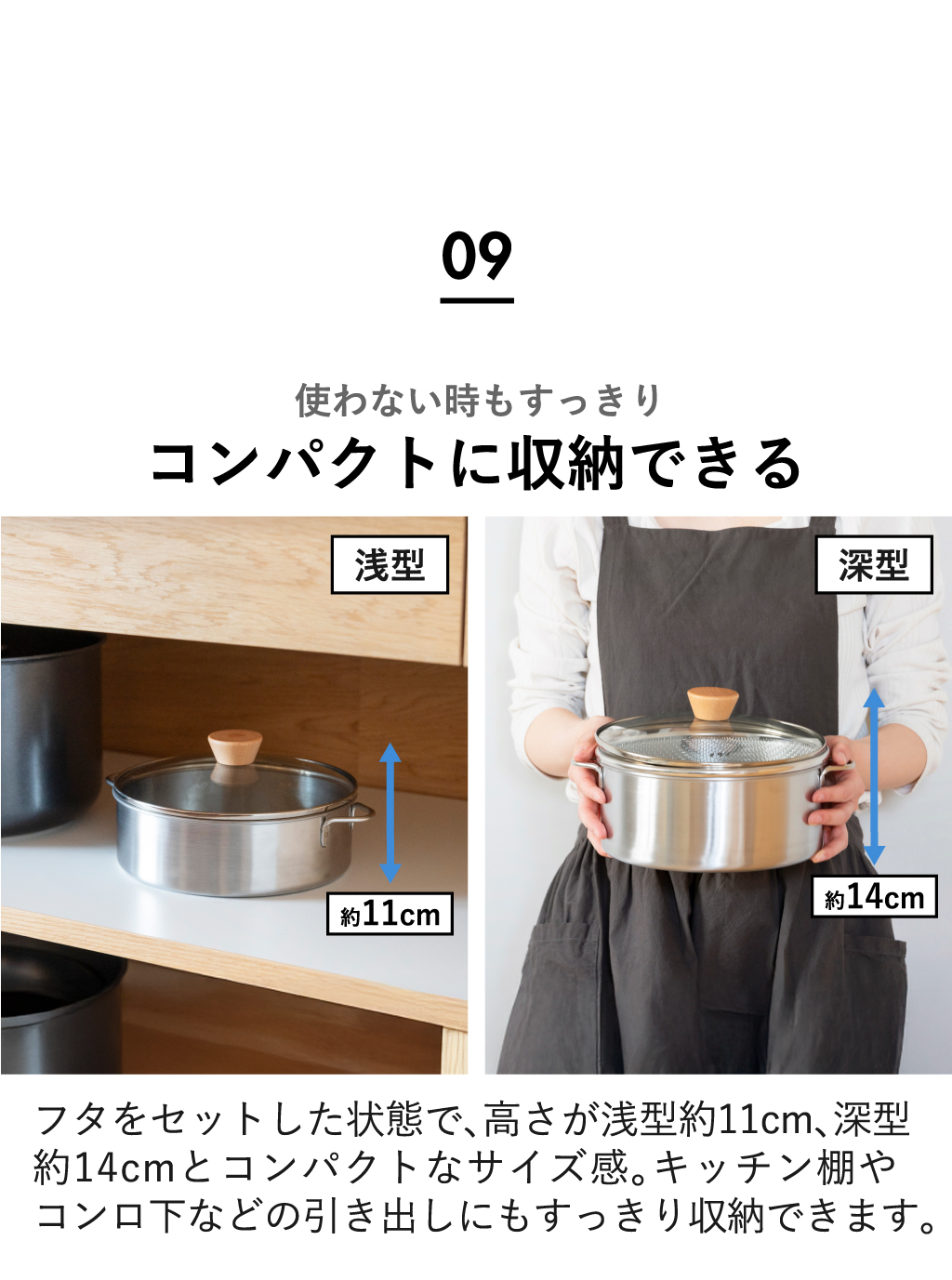 浅型は食卓にそのまま出しやすく、蒸したてを器代わりに楽しめる仕様。