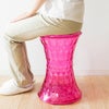 シンメトリーな砂時計を思わせる形と、ダイヤモンドのようなカッティングが目を引くスツールです。