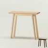 天板から脚が張り出さないデザインになっているので、壁に沿ってピタッと設置することが可能です。限られた空間を有効に使えます。脚の付け根は強度のあるフィンガージョイント接合。部材の角は丸く整えられているので、小さなお子様がいるご家庭でも安心です。