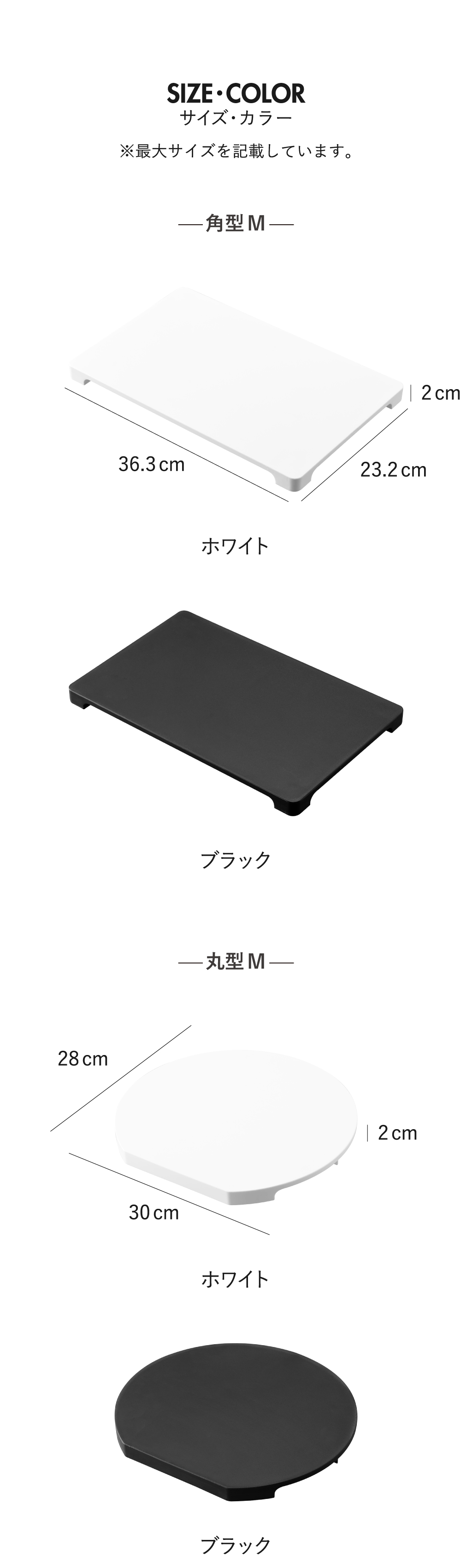 食洗機対応まな板の色は、それぞれホワイトとブラックの2色からお選びいただけます。