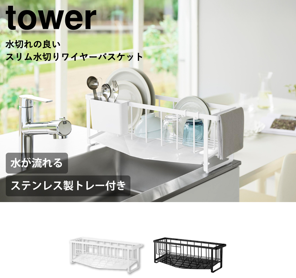 水切れの良いスリム水切りワイヤーバスケット tower