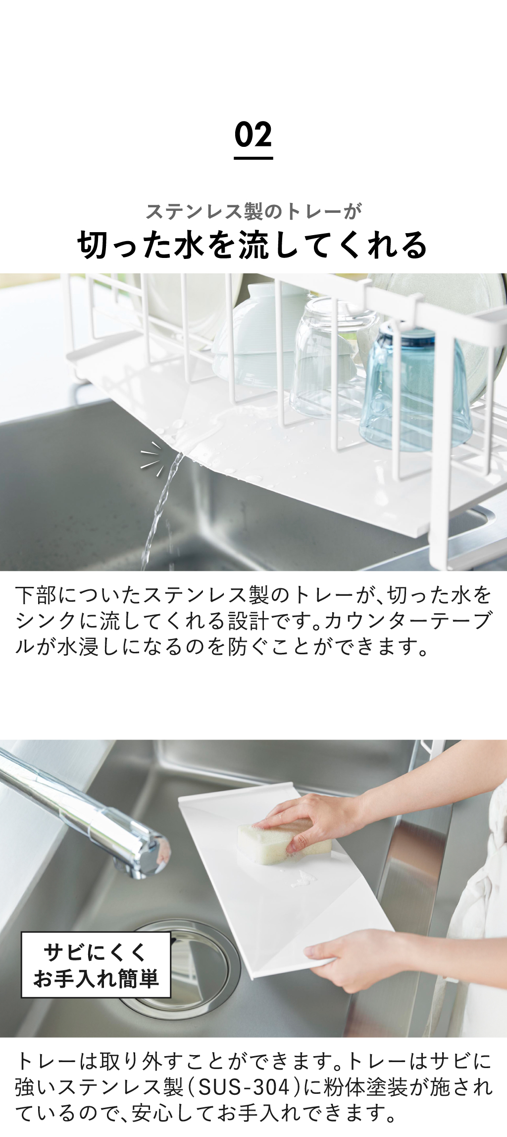 サビや水に強いステンレス製(SUS-304)なので、安心して洗えます。