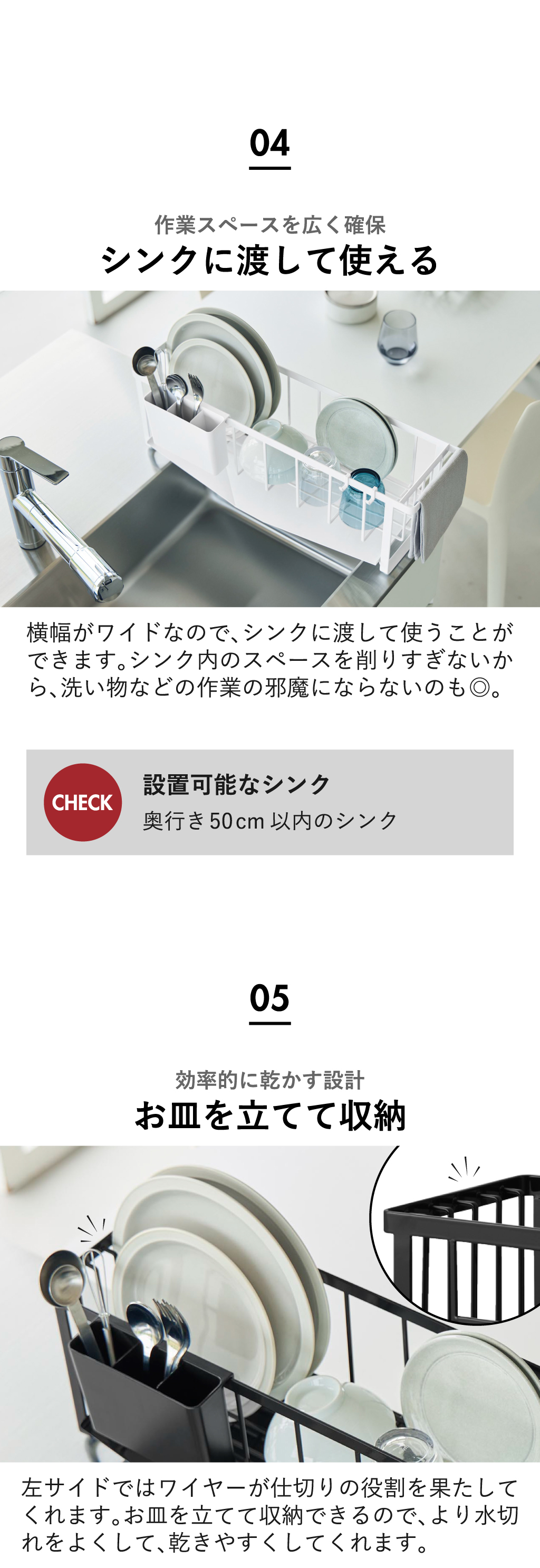 シンク上水切りラックはとてもスリムなので、省スペースで設置できます。
