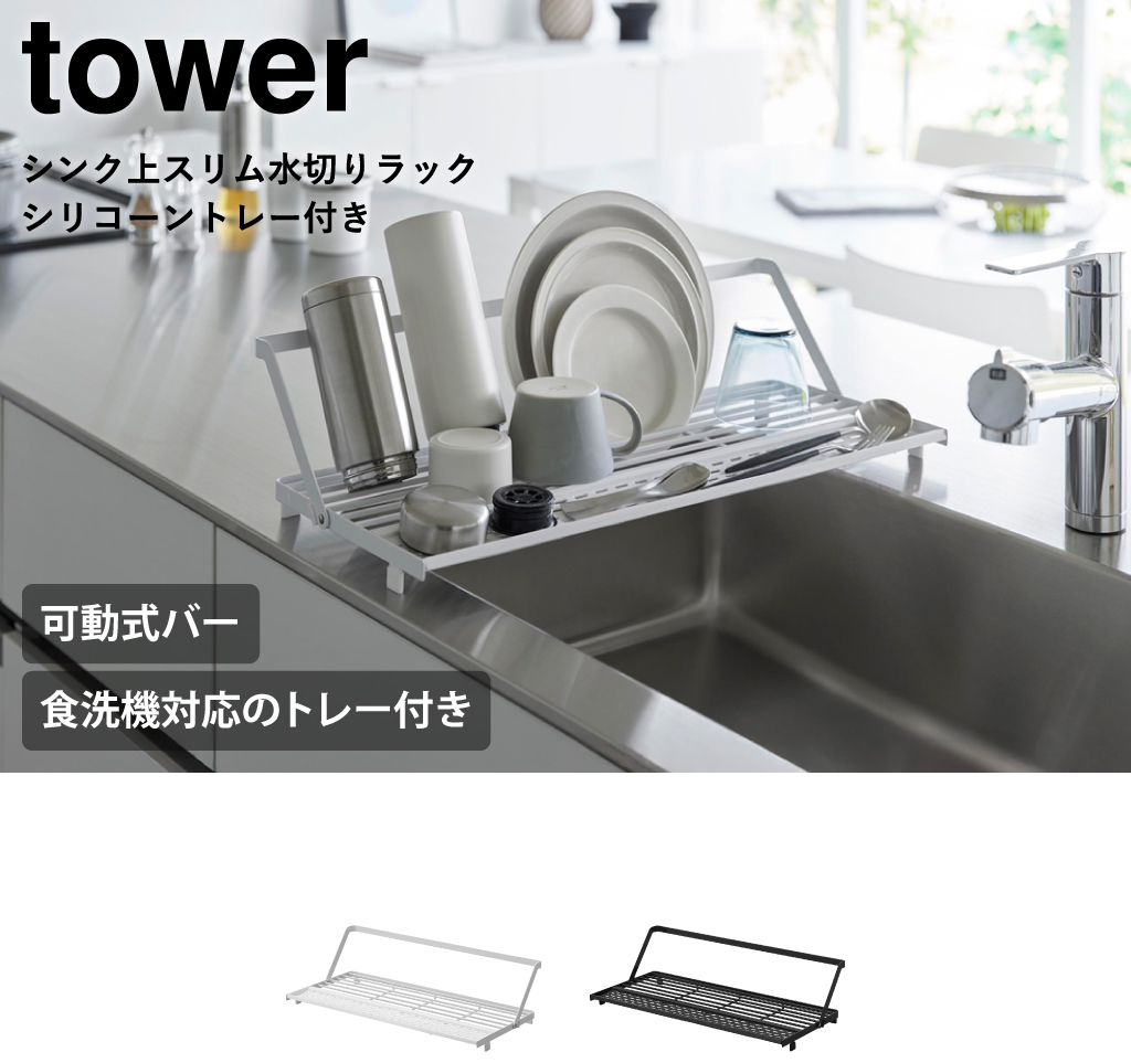 シンク上スリム水切りラック tower シリコーントレー付き
