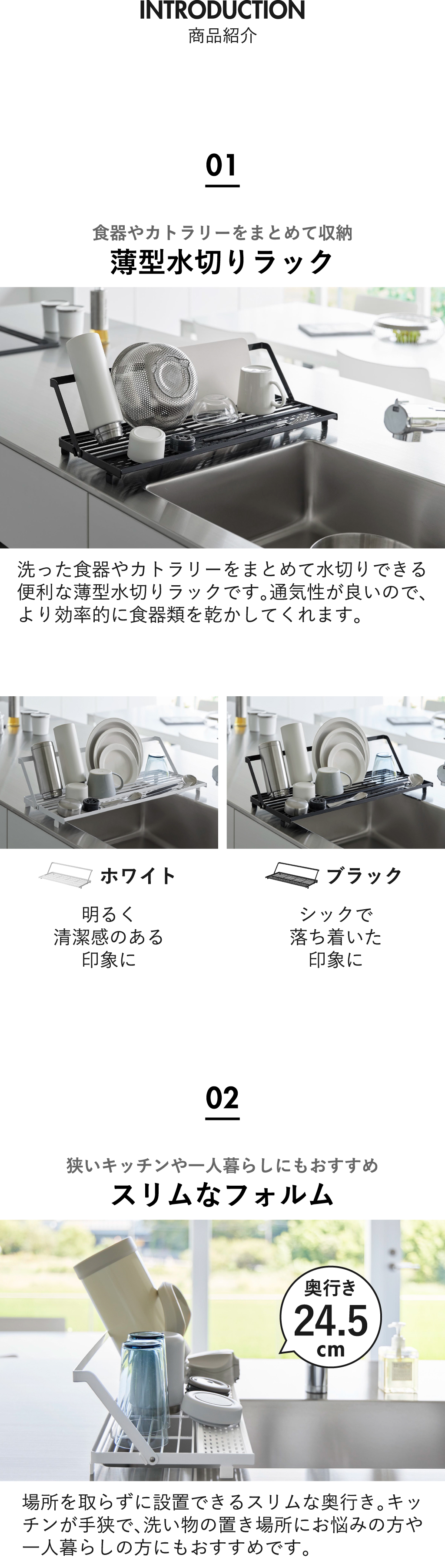 シンプル設計のスリム水切りラックで通気性が良いので、効率的に食器類を乾かしてくれます。