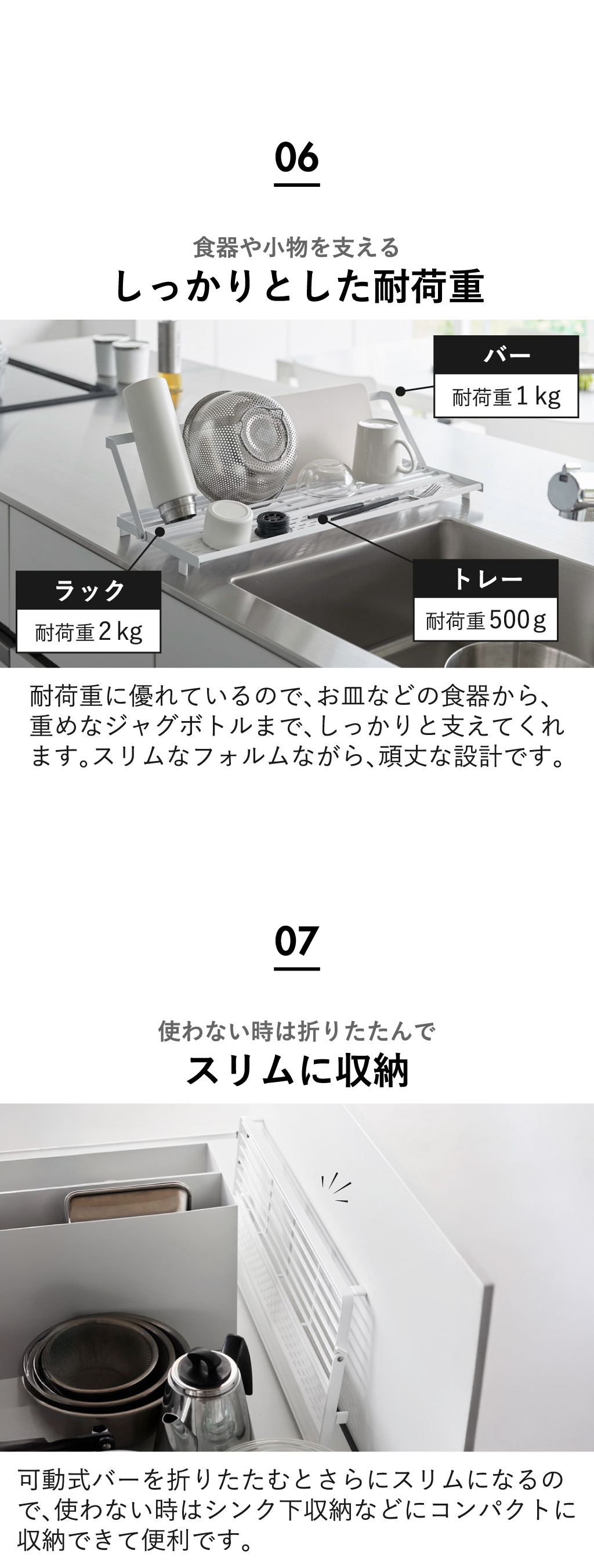 使わない時は、可動式バーを折りたたむことで、シンク下収納などにしまっておけて便利。