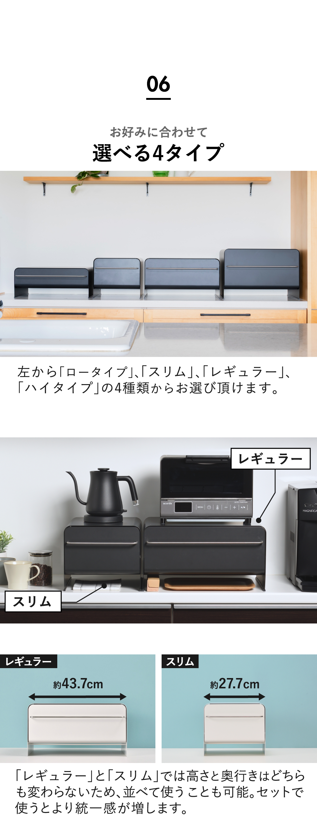 レギュラータイプはトースターまわりでごちゃつきがちなアイテムをまとめやすく、