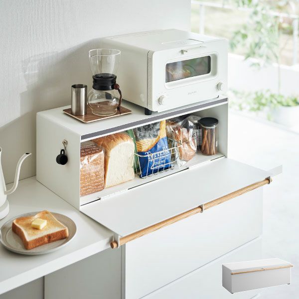パンを湿気や乾燥から守ってくれる、おしゃれなブレッドケースです。大容量の約32Lサイズだから、食パンだけでなく、ジャムやお菓子、紅茶や調味料などをまとめて収納できます。中身を隠せる扉付きで生活感をオフできるのも◎。