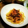 ロゴが中央上部にデザインされたスープ&パスタプレート。