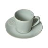 ソーサーにおしゃれなロゴが入っているティーカップ&ソーサー。