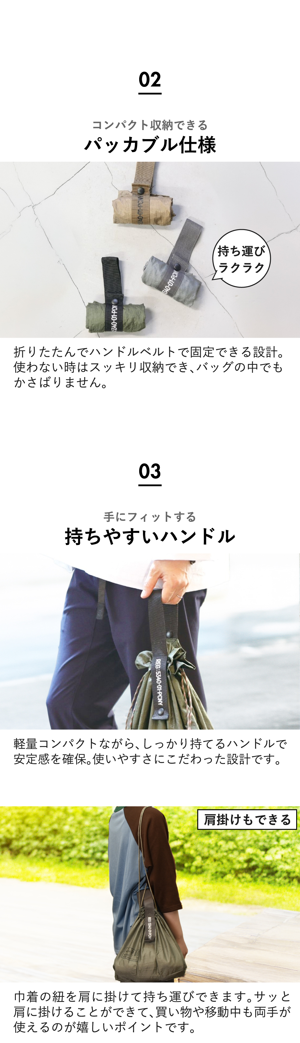 軽量・コンパクト・使いやすいを叶えた、日常使いに最適な折りたたみエコバッグです。