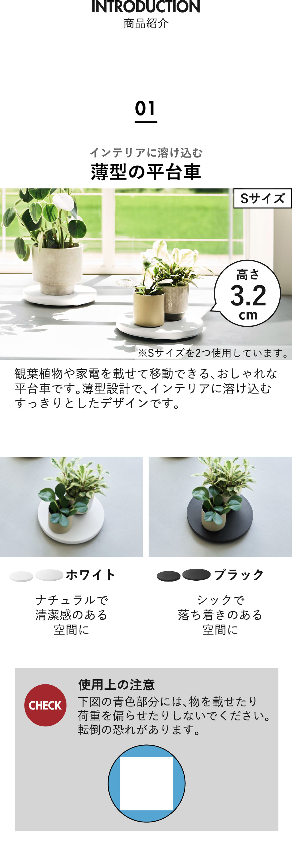 観葉植物の鉢植えや家電などを載せて移動できる、towerシリーズの平台車です。
