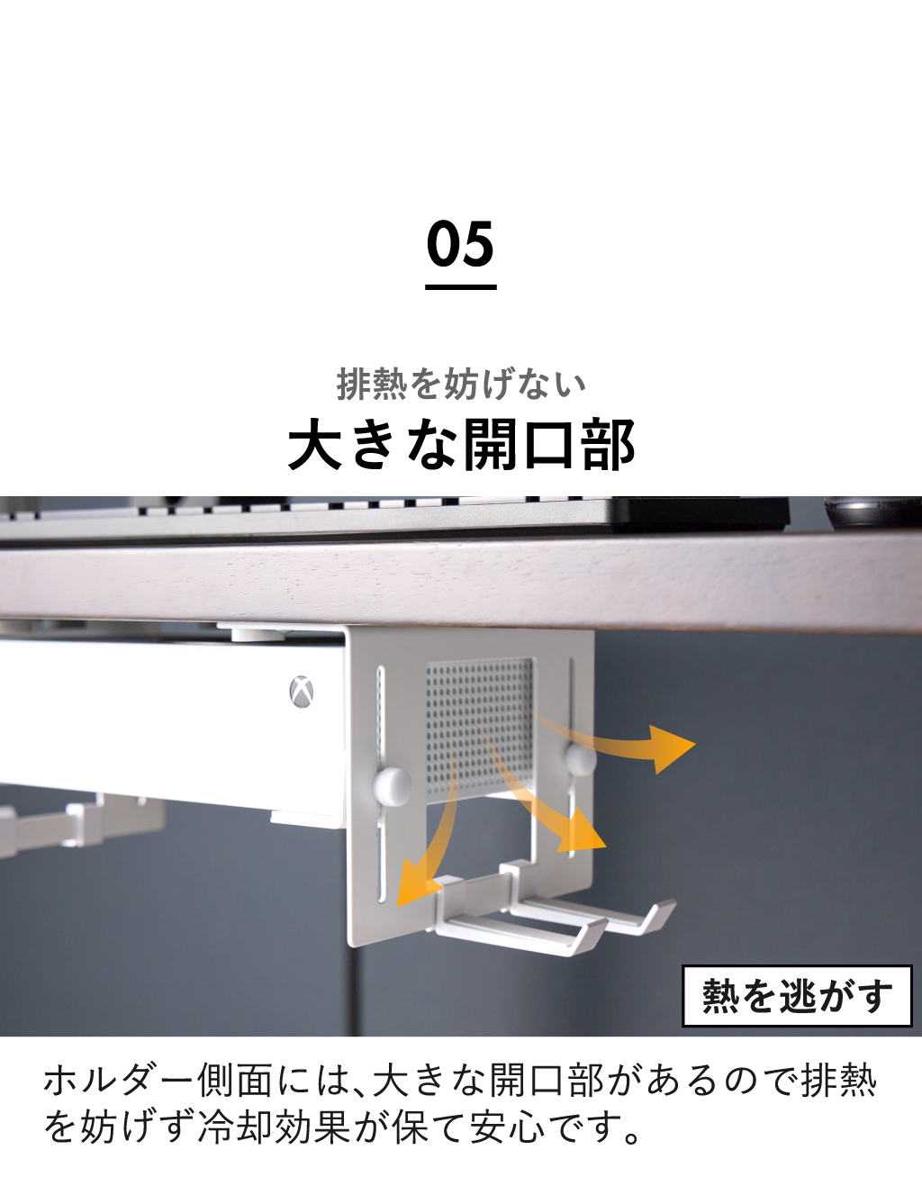 さらに、大きな開口部で排熱を妨げず、本体の冷却効果をしっかり保てる安心設計になっています。