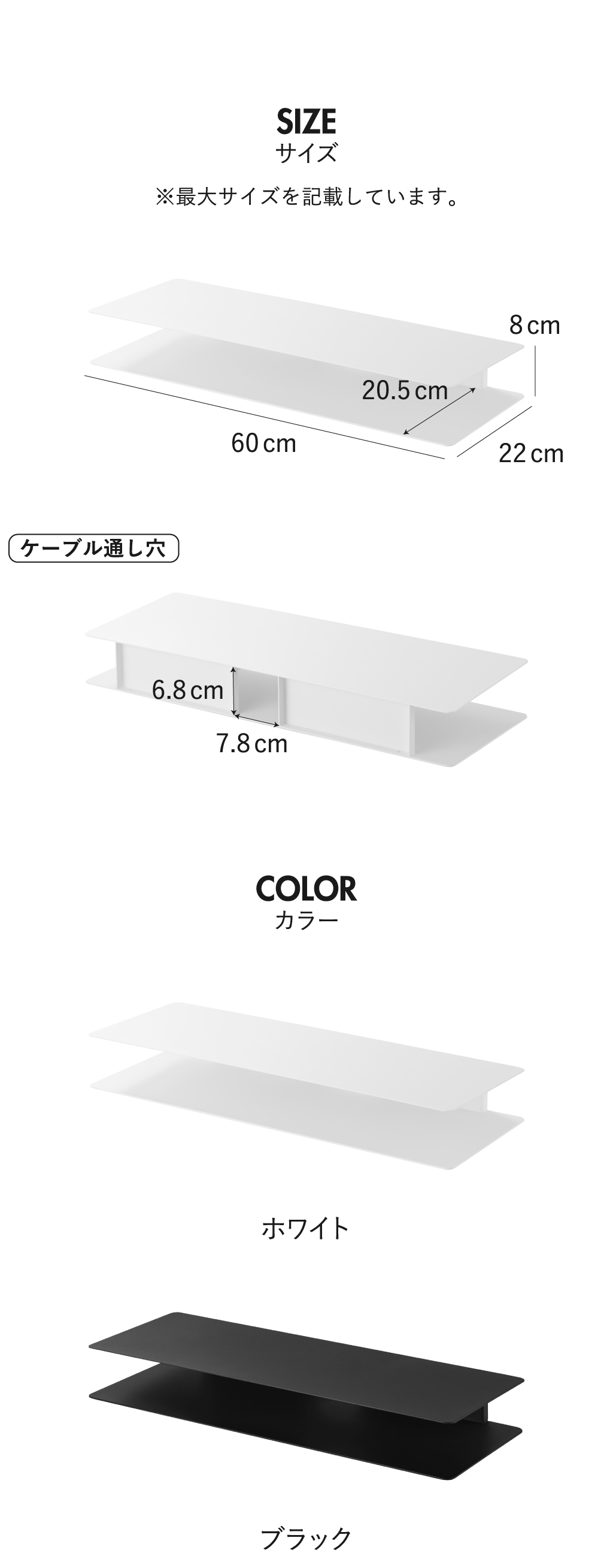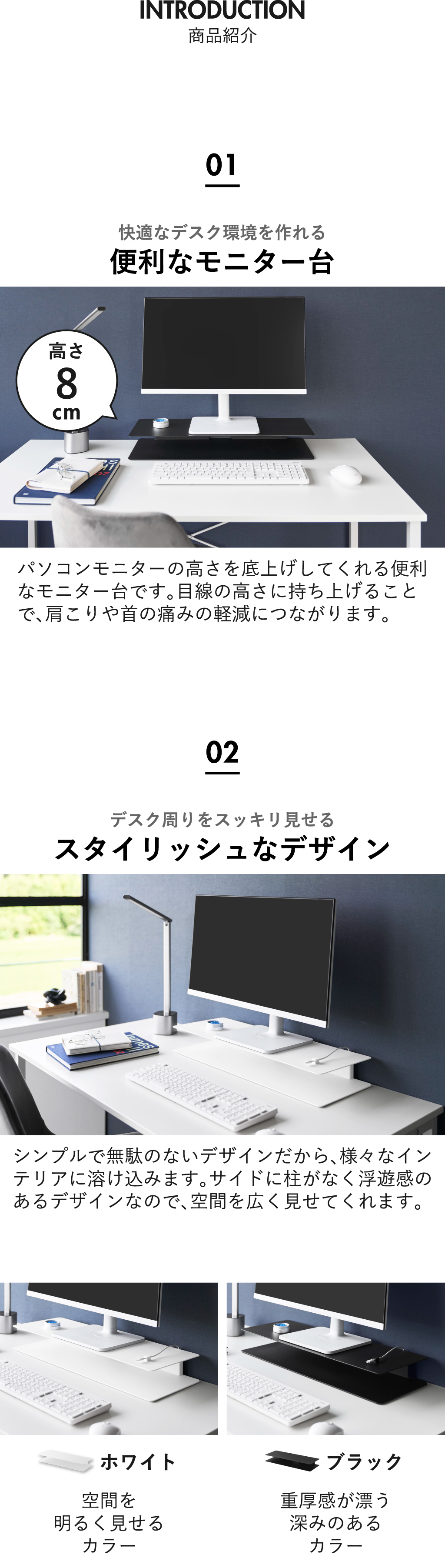 モニター台の色は、ホワイトとブラックの2色からお選びいただけます。