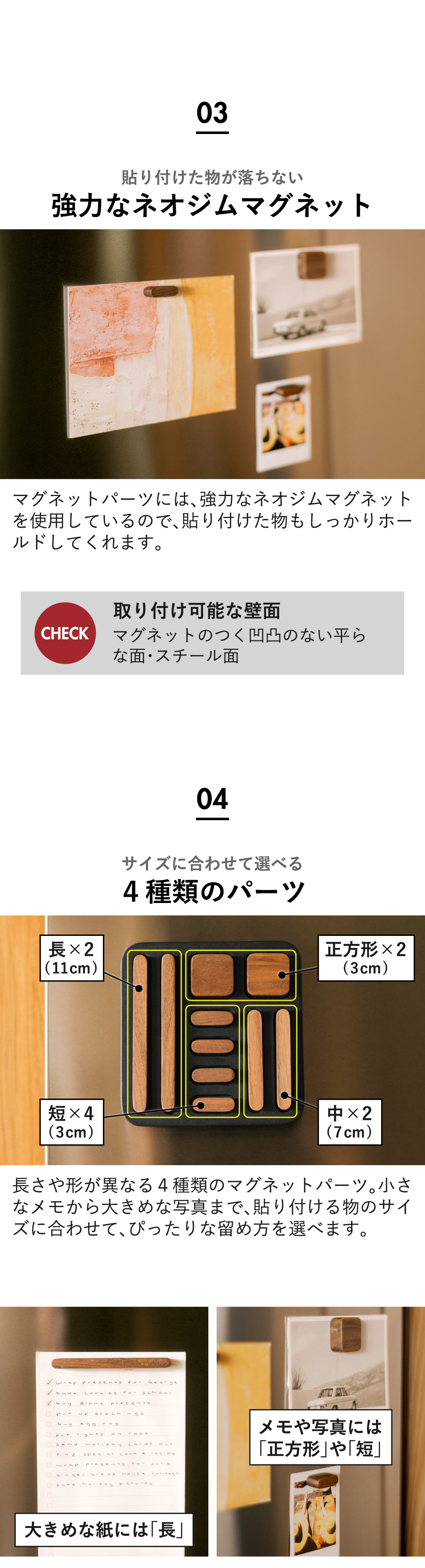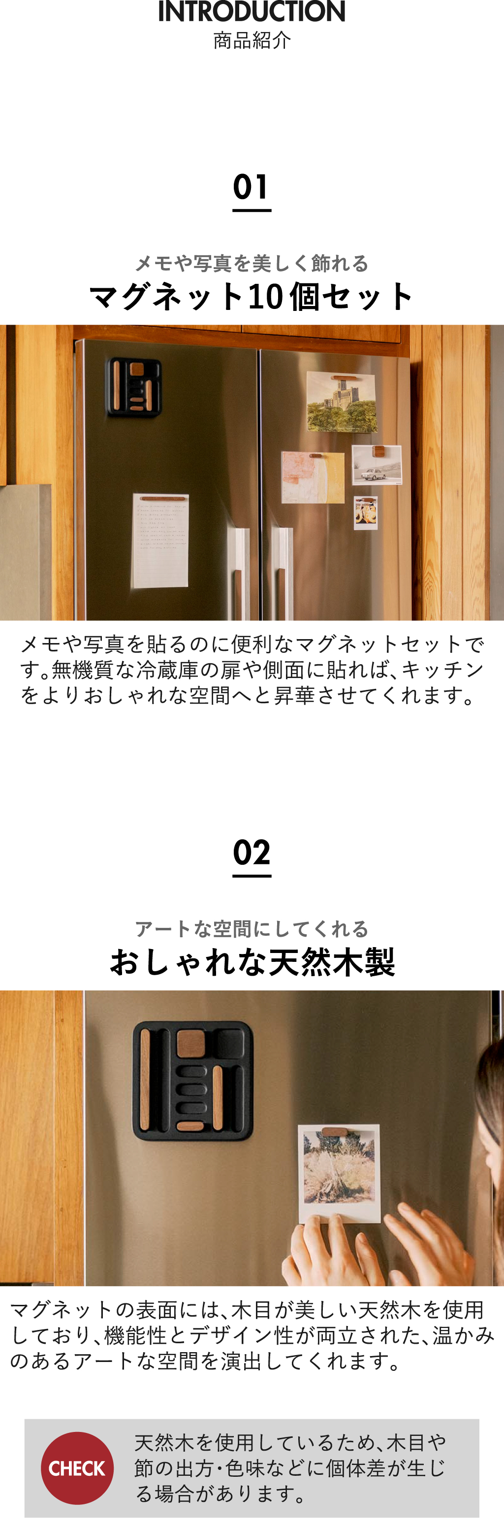 磁石マグネットの表面には、木目が美しい天然木を使用しています。