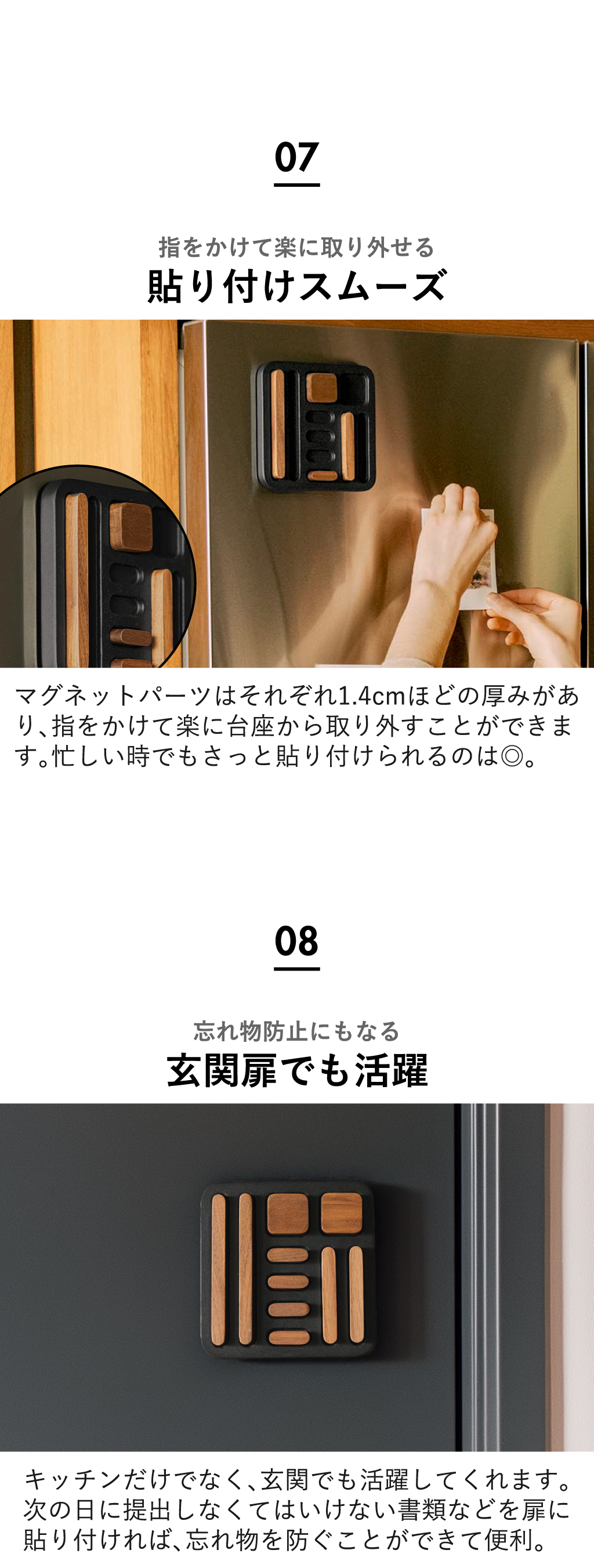 マグネットパーツには厚みがあり、指を掛けてさっと取り外せて便利。