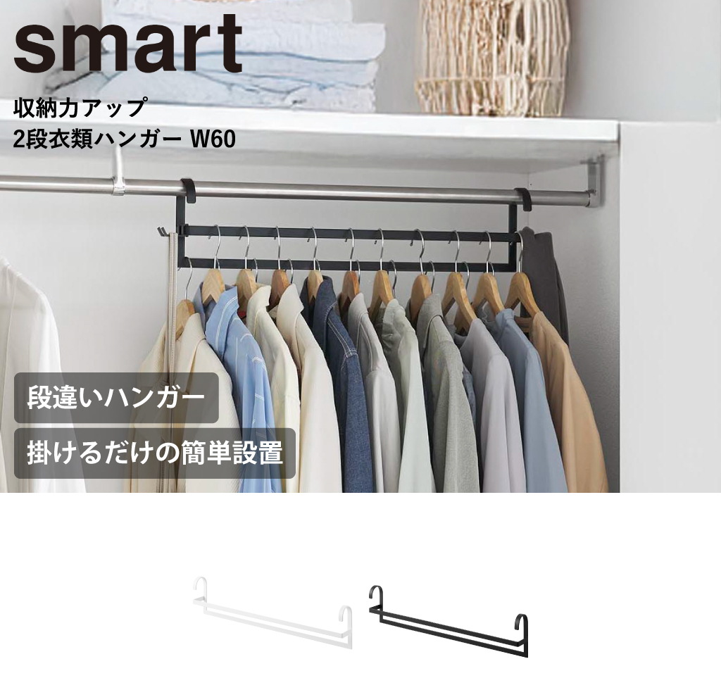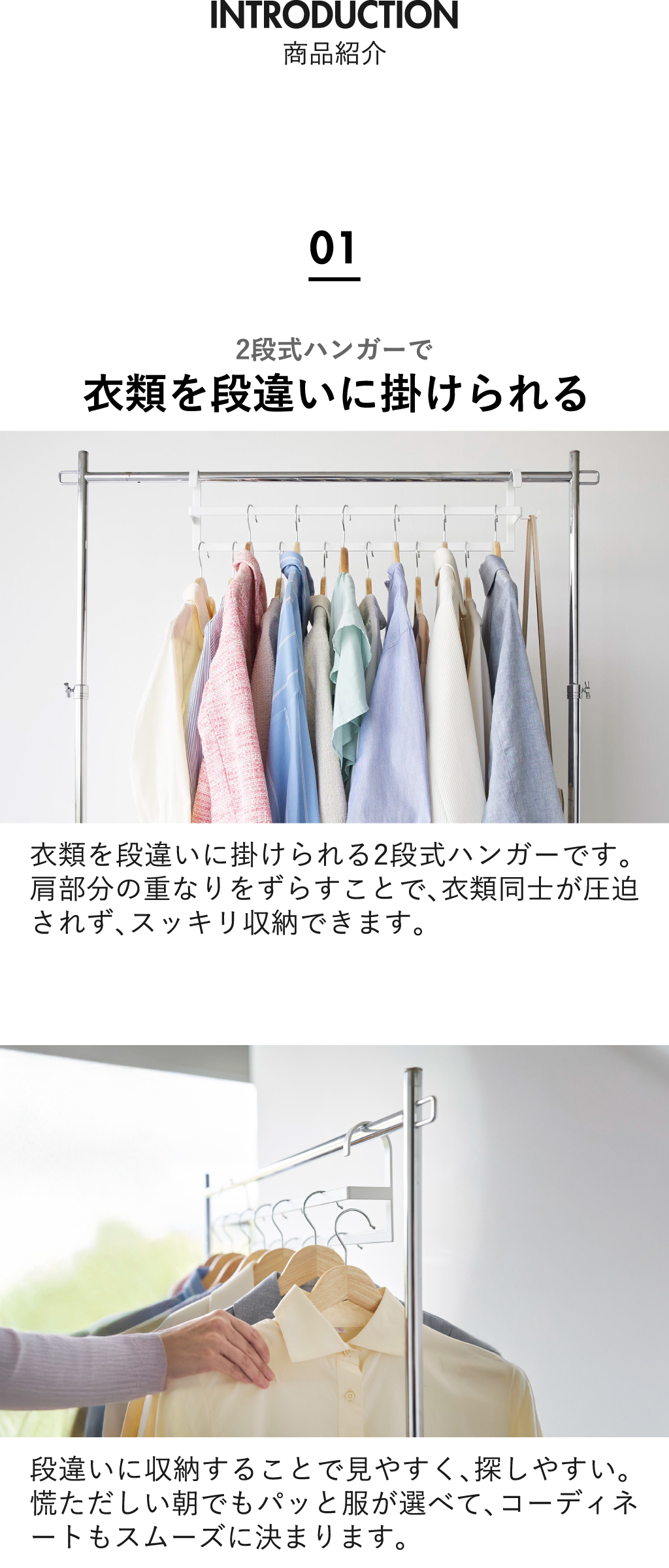段違いに掛けられる設計で、衣類をスッキリ整理。