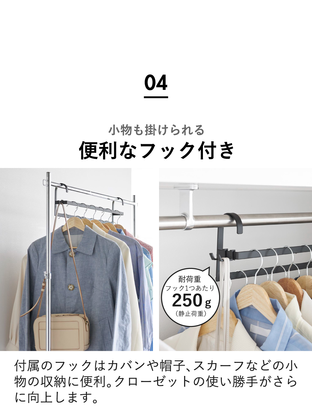 また、付属のフックはバッグや帽子などの小物収納にも便利。